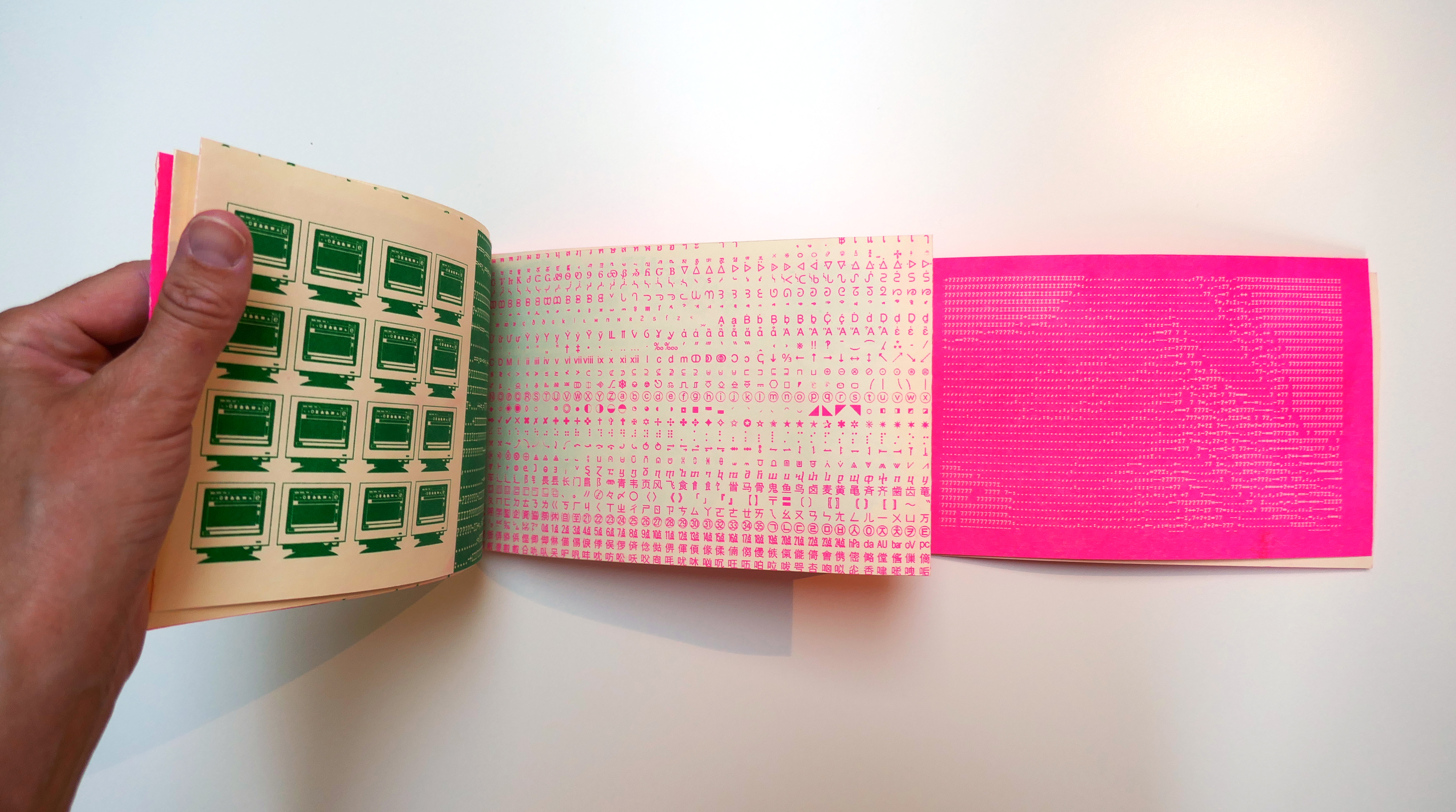 My publication centers around visions of futurity, as conveyed through type, technology, and science fiction, as well as ways the future has been conveyed and constructed in the past. I began looking at typefaces that evoke “futurity,” compiling a list of those used to indicate the future in classic science fiction films. In addition, I compiled glyphs, Unicode symbols, ASCII-generated images, and collaged photos that contribute to this narrative of constructing the future through imagery and type. What I found interesting, was not just the type, but recurring themes such as the omnipresent corporate branding in multiple films, suggesting the sinister role of corporate entities that became part of these futuristic visions. The title of the publication: “Des-tructions of Futurity” is a humble attempt at recognizing Archigram’s creation of language, their own title combining two word roots, and referencing the act of transmission of their architectural ideas. My title combines design and construction, referring to the act of building a futuristic environment through design...and also reads “destruction,” alluding to the dystopian settings typical of science fiction.